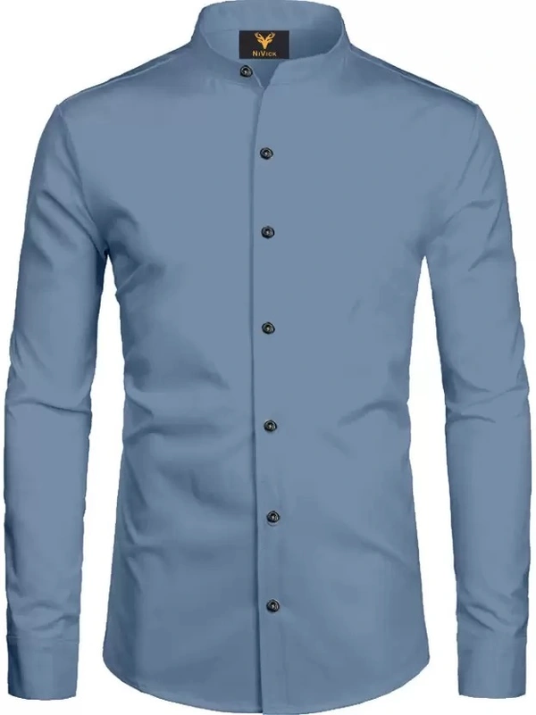 Classily designed with a Mandarin collar, this full-sleeved shirt is fashioned from a cotton blend fabric ( imt )
